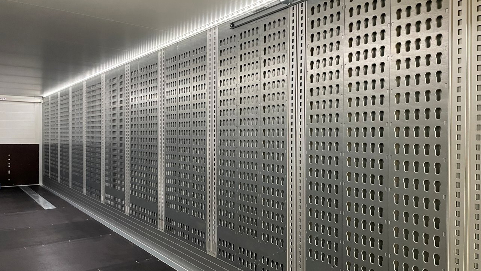 The double-decker rails and keyhole plates are secured to pillars integrated into the side walls, which themselves are made from a galvanised cavity steel construction. “This patented technique enables us to achieve the ultimate robust and durable design. "Depending on the requirements, we offer side walls for two different interior heights: 2,700 mm or 2,900 mm in the MEGA version,” emphasises Sierra.