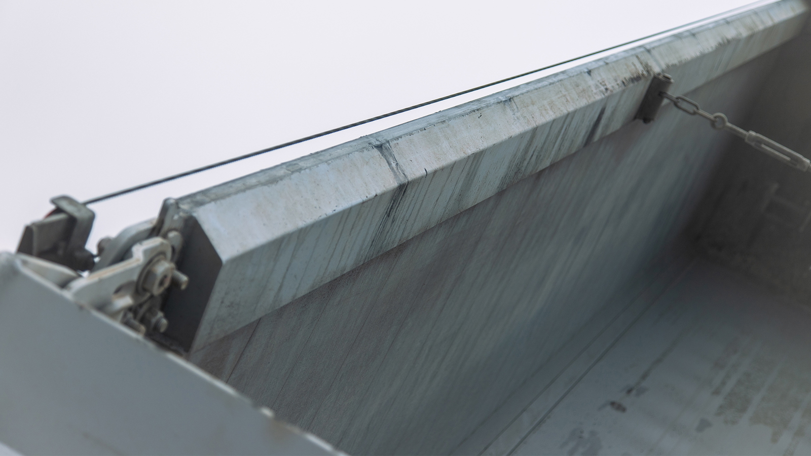 One significant point on the revised trough design is the reinforced upper lip with wider contact surfaces for the sliding tarpaulin. Both changes mean that the upper lip itself, along with the sliders on the tarpaulin, wears at a much slower rate. Or to put it another way: the service life of the trough and tarpaulin is increased, in turn decreasing the amount of maintenance required. Furthermore, the standardised sliding tarpaulin components for the various aluminium and steel troughs improve the spare parts supply.
